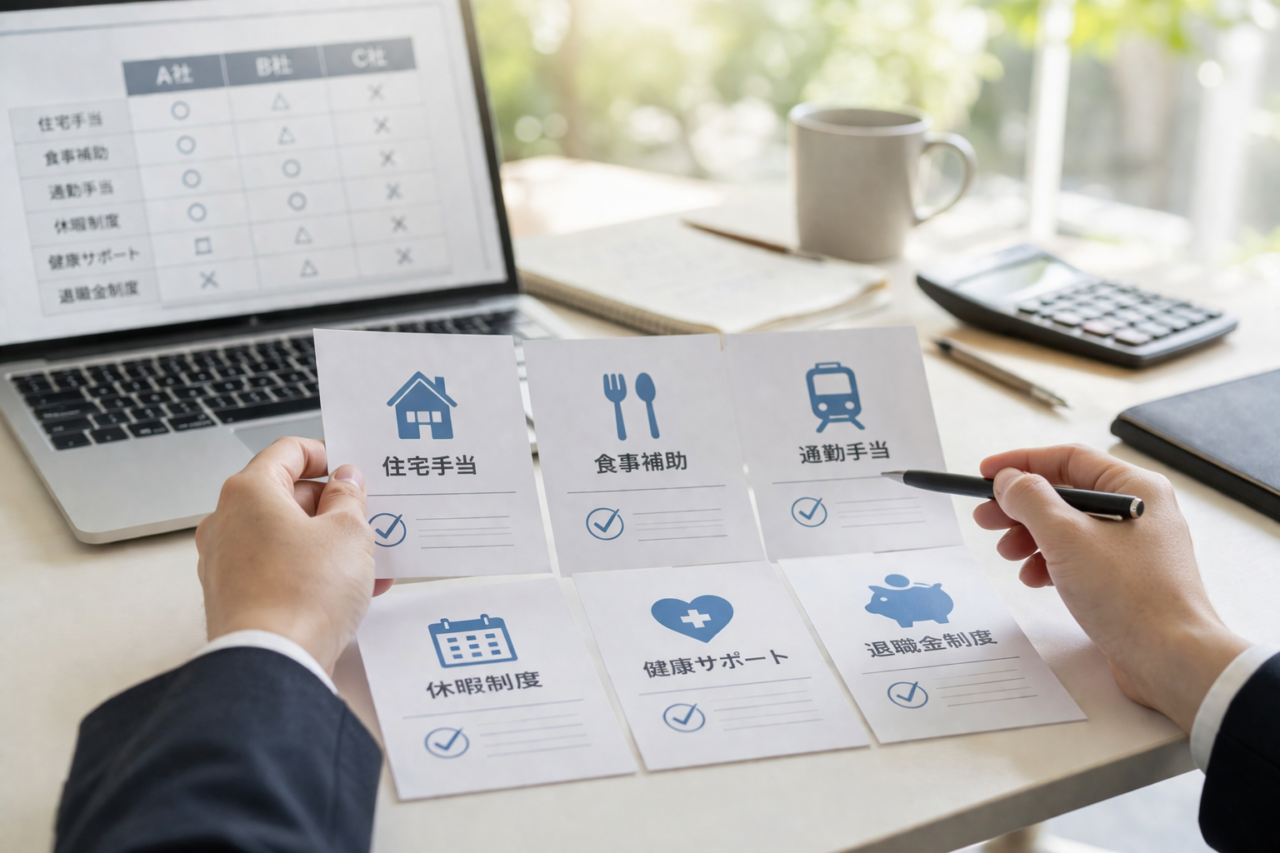つまり、福利厚生は制度の有無だけでなく、内容や対象、使い方が具体的に伝わっているかどうかも比較されるポイントになります。